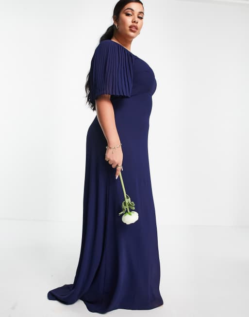 Tfnc Plus Bridesmaid Sweetheart Neck Flutter Sleeve Maxi Dress In Navy Asos
