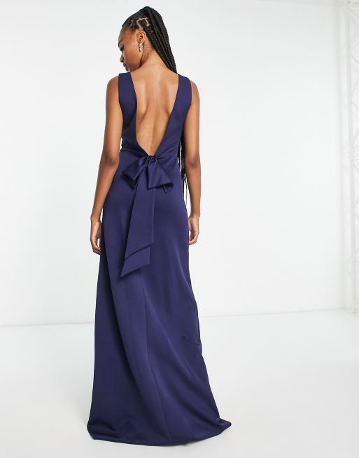 Tfnc Tall Bridesmaid Bow Back Maxi Dress In Navy Blue Asos